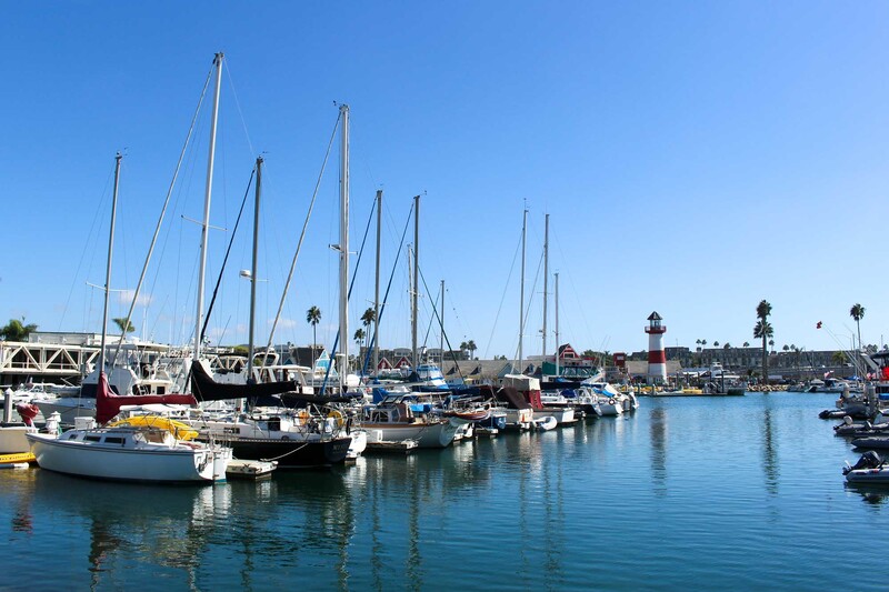 Unlike most ports, all boats are visible from a two-lane asphalt drive encircling its shoreline. Fine restaurants, picnic tables, and a Harbor Village with shops, eateries, and a lighthouse, along with the nearby Harbor Beach combine to offer the seafarer and motor visitor an enchanting experience of color and atmosphere. Oceanside's Harbor is a mecca for sportfishing, whale watching, boating and other water-oriented activities. The Marina inside the harbor has sloops ranging in length from 25-51 feet. Transient moorings and limited RV beach camping are available.